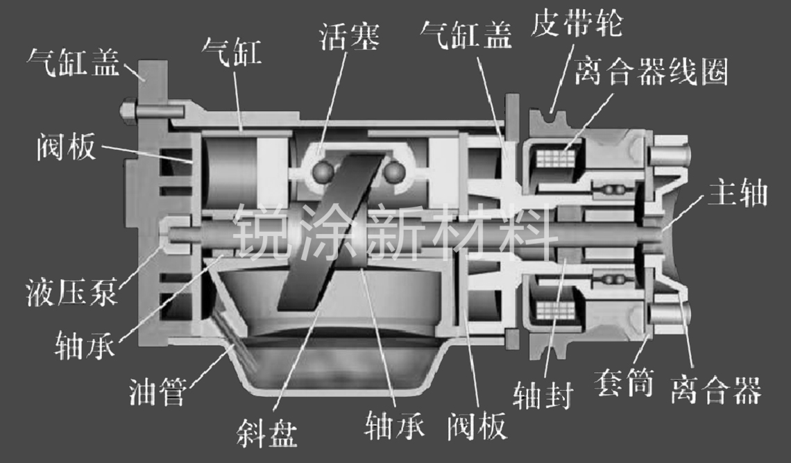我司減摩涂層可應(yīng)用在汽車(chē)空調(diào)壓縮機(jī)中的活塞、斜盤(pán)等部件上。