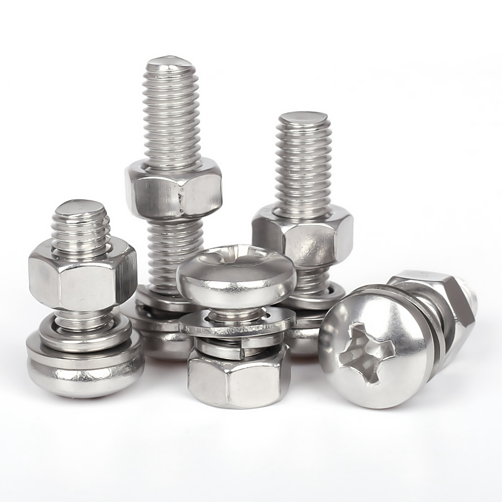 盤(pán)頭組合螺釘圓頭三組合螺絲里的螺絲尺寸國(guó)標(biāo)要求是GB818的,各類(lèi)主要技術(shù)要求為:材質(zhì)要求有鐵的和不銹鋼的,鐵的有低,中,高碳鋼的,不銹鋼組合螺絲的材質(zhì)有不銹鋼201,不銹鋼304和不銹鋼316等的。